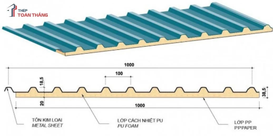 Tôn Thép Toàn Thắng là đơn vị sản xuất tôn xốp PU 3 lớp với dây chuyền hiện đại, chúng tôi có: