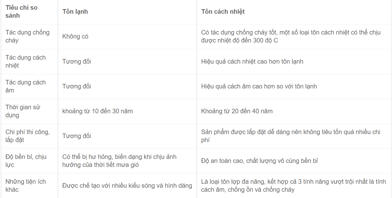 – Hai loại tôn này đều có khả năng cách nhiệt rất tốt.