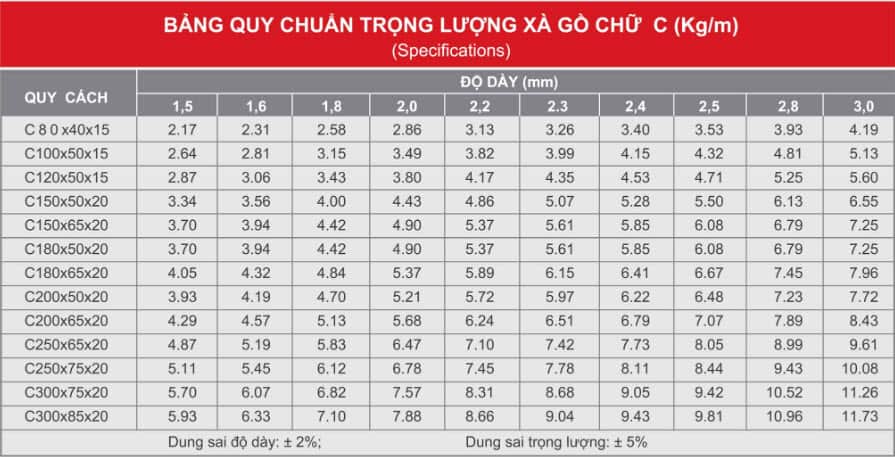 Trọng lượng xà gồ C